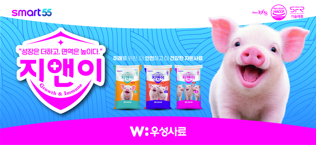 ㈜우성사료는 혈장단백을 사용하지 않은 자돈사료 신제품 ‘지앤이(Growth&Immune) 1호, 2호, 3호’를 4월 17일 출시한다고 밝혔다. 이번 제품은 아프리카돼지열병(ASF) 확산 이후 제기된 사료 원료 안전성 우려에 대응해 개발된 것으로, 질병 전파 리스크를 낮추면서도 기존 혈장단백을 사용한 자돈 사료 이상의 성장 성능과 면역력을 구현한 제품이다.